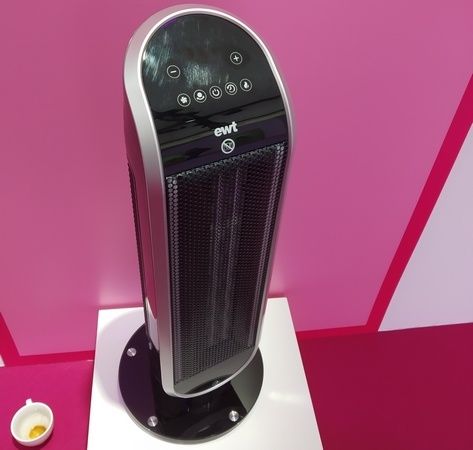 Tour de chauffage ventilée et connectée 2 en 1, 2 allures de chauffage à technologie céramique (2500 Watts) et 3 vitesses de ventilation + oscillation, filtres à poussière lavables et écran LED tactile