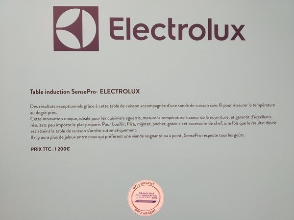 La médaille d'argent est décernée à la table de cuisson par induction Electrolux SensePro qui a su séduire le jury grâce à une sonde sans fil intégrée qui est capable de prendre la température des aliments à cœur et de stopper la cuisson une fois la température souhaitée atteinte.