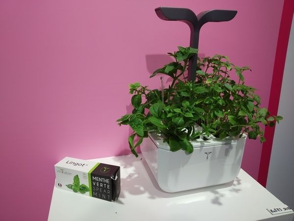 Potager d'intérieur "Made In France" autonome et connecté avec irrigation hydroponique, leds horticoles et lingots de recharge de plantes prêts à l'emploi avec graines certifiées "bio"