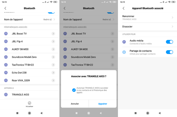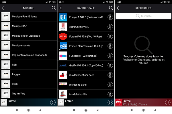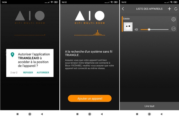 captures d'écran de l'application smartphone Triangle AIO multiroom @ Tests et Bons Plans