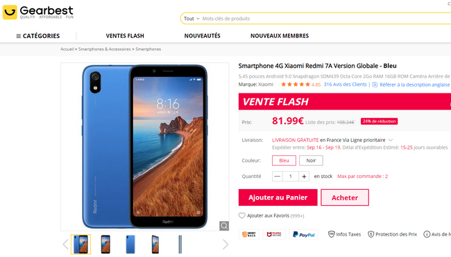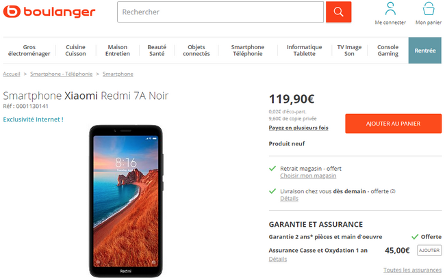 Le prix de base de ce smartphone Xiaomi Redmi 7A est de 119€, prix pratiqué par Boulanger donc le vendeur de la market-place a rajouté 181€ au prix de base pour faire croire a une super promotion qu'il ne faut surtout pas rater et vous inciter à l'acheter sans comparer.