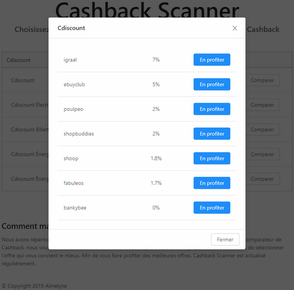captures d'écran du comparateur de sites de cash-back Aimelyne - crédit images : Aimelyne