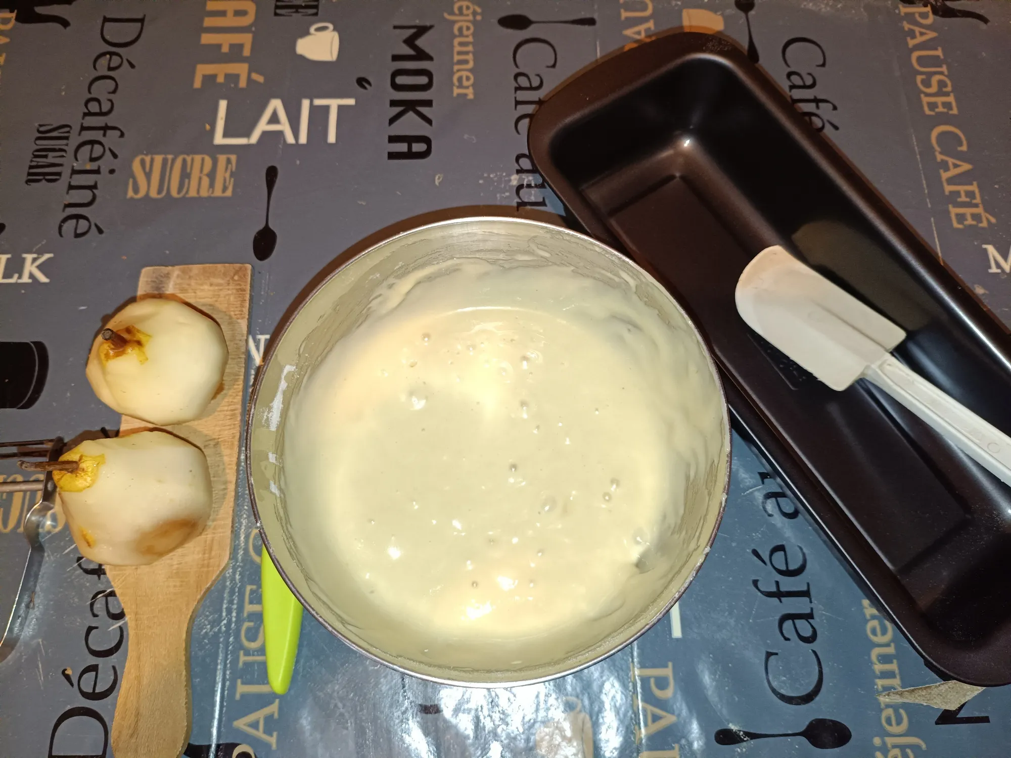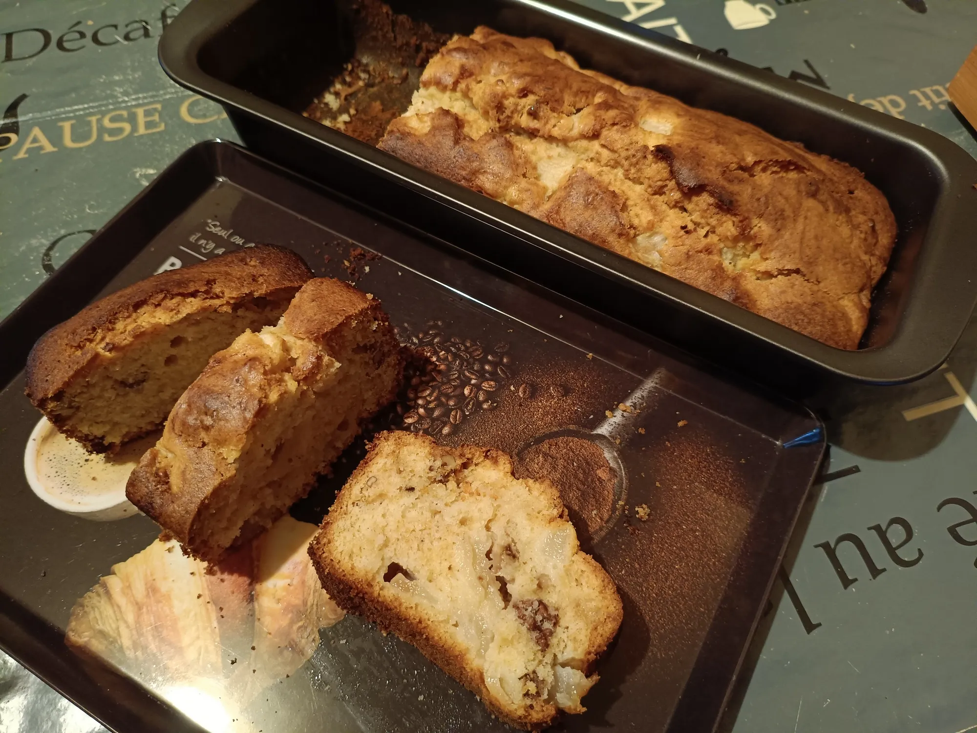 Ingrédients : 200 g de farine, 3 œufs, 120 g de sucre, 100 g de beurre fondu, 1 sachet de levure, 2 ou 3 fruits abîmés (banane, poire, pomme, etc...).