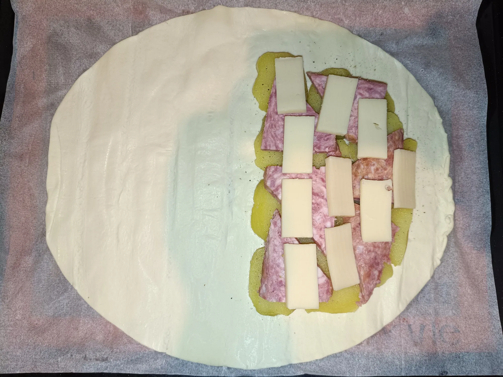 Ingrédients : une pâte feuilletée, restes de légumes, viandes ou poissons, de charcuteries et fromages.
