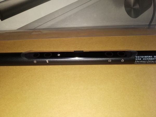 Néanmoins avec 4 boutons ce ne doit pas être bien compliqué, au niveau de l'installation c'est d'ailleurs très simple puisqu'il suffit de placer la barre lumineuse dans le support et de positionner le support sur l'écran d'ordinateur, la dernière étape consiste à brancher les connectiques USB pour l'alimenter en énergie.