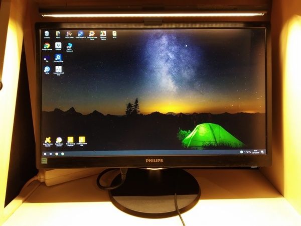 Et en effet elle arrive parfaitement à trouver la bonne luminosité par rapport à l'éclairage ambiant pour bien éclairer le poste de travail sans gêner la lecture à l'écran ni fatiguer les yeux, le calibrage est optimal et le périmètre d'éclairage est de 35 cm de profondeur sur 75 cm de largeur devant l'écran.