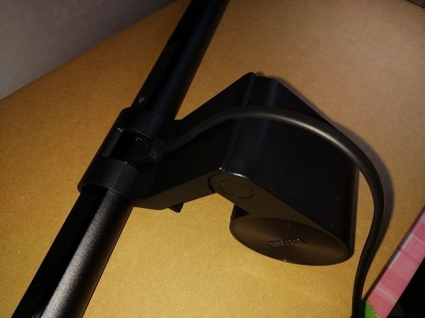 La fixation de la BenQ ScreenBar e-reader ne nécessite aucune attache le support se pose juste sur le haut de l'écran, et comme déjà évoqué il ne prend pas de place sur le bureau puisque sans pied, il faut compter environ 4 ou 5 cm de hauteur et à peine plus d'épaisseur à l'arrière.