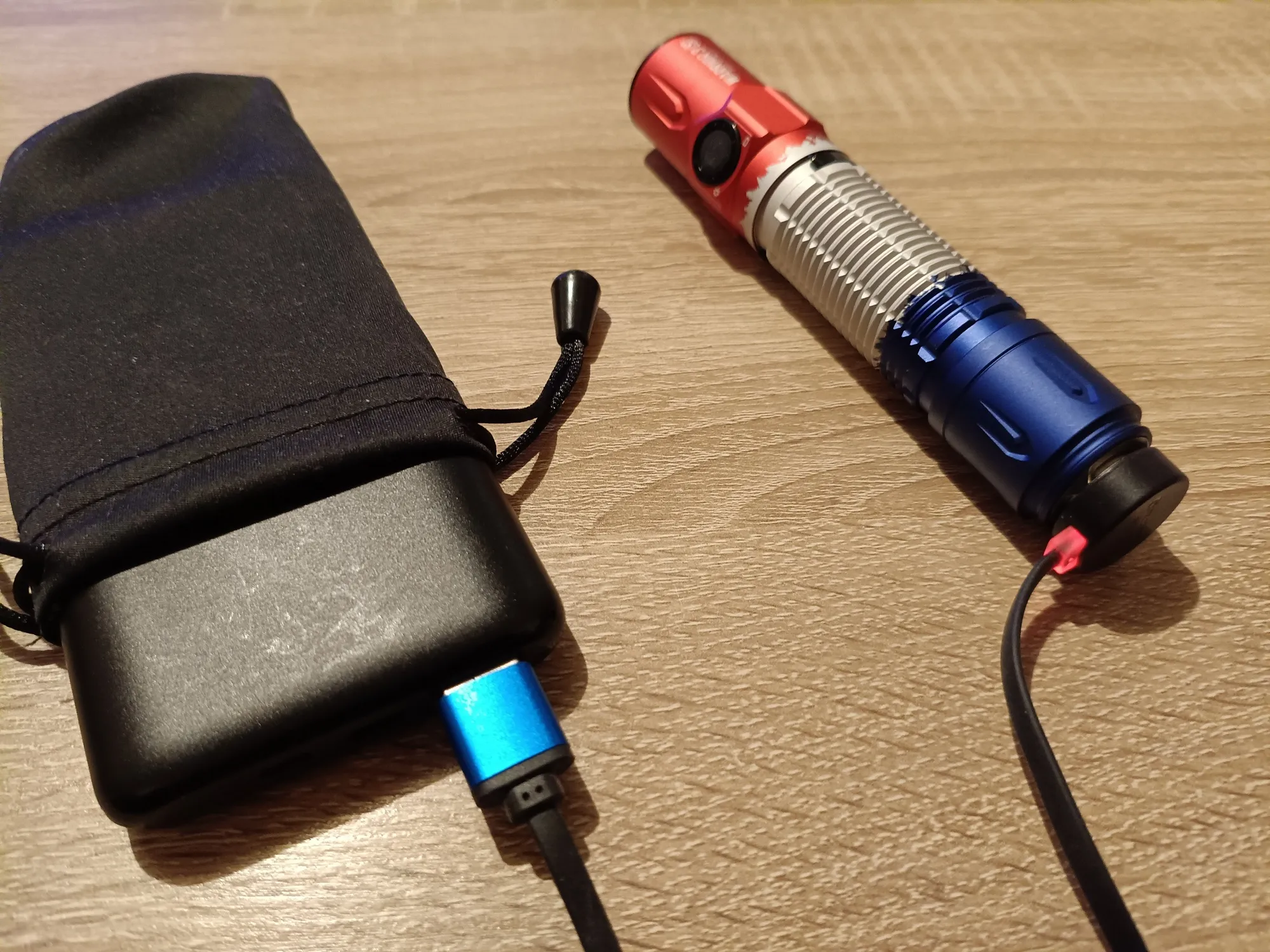 La charge se fait par magnétisme, le module MCC3 du câble fourni venant se ''coller'' au cul de la lampe pour charger la batterie. Une batterie qui est accessible, il suffit de dévisser le cul de la lampe pour découvrir une batterie Lithium-Ion de 5.000 mAh (soit 18 Wh) au format pile.