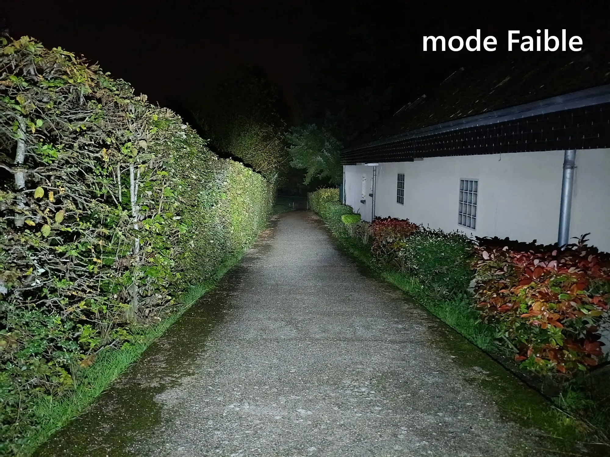 Outre le mode « stroboscope » pour se signaler dans un environnement dangereux et n'a pas vocation à être utilisé en continu, les deux modes d'éclairages les plus intenses ont donc une luminosité dégressive. Déjà car à priori et sauf cas exceptionnel, vous n'avez pas besoin d'éclairer à 300 mètres en continu, ou alors il vous faut un éclairage qui soit adapté à cet usage et pas une petite lampe de poche.
