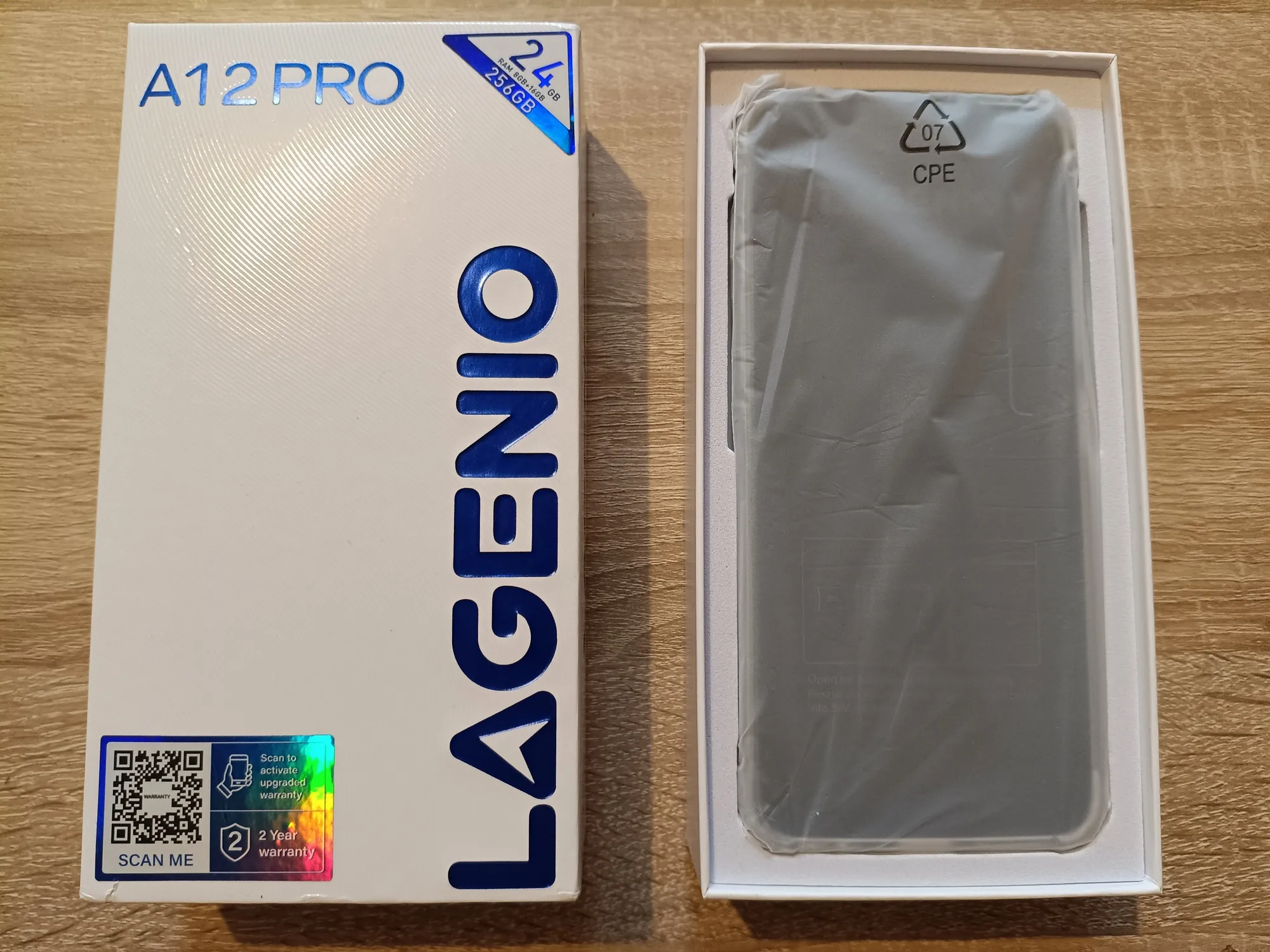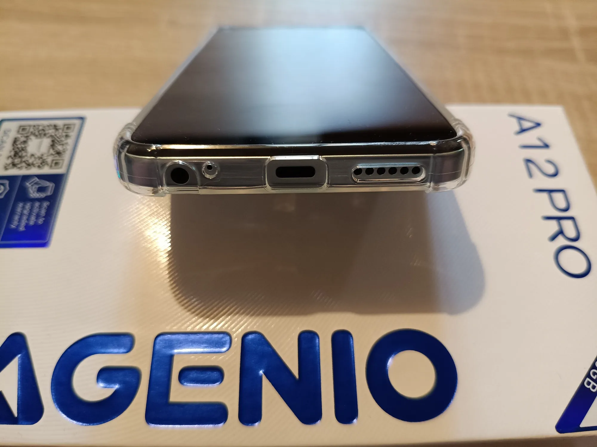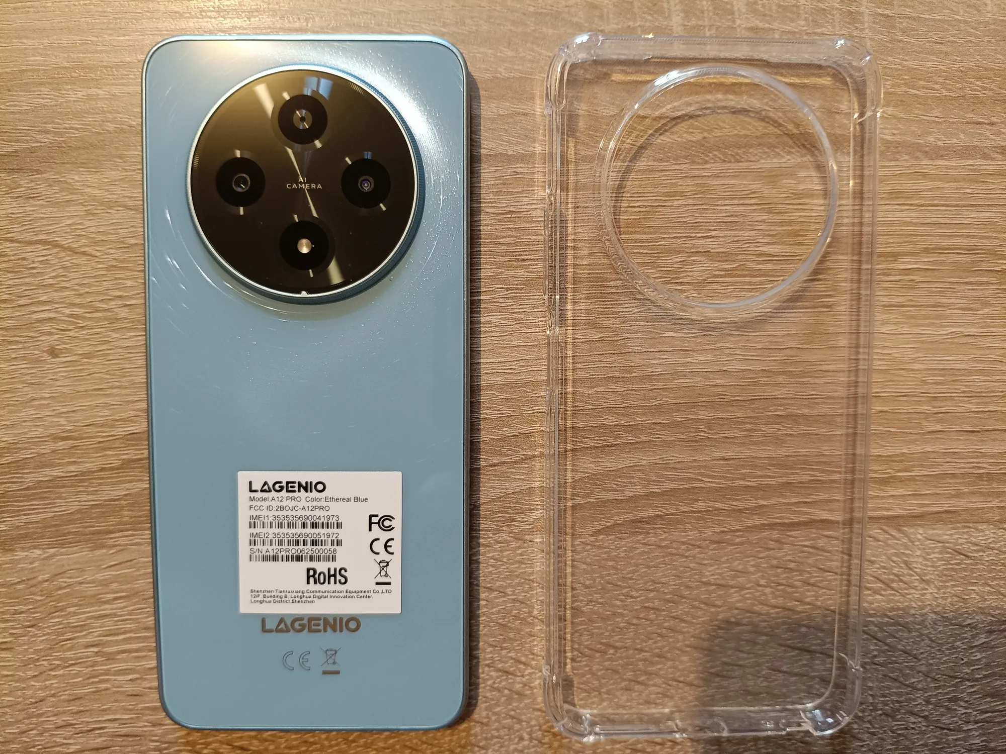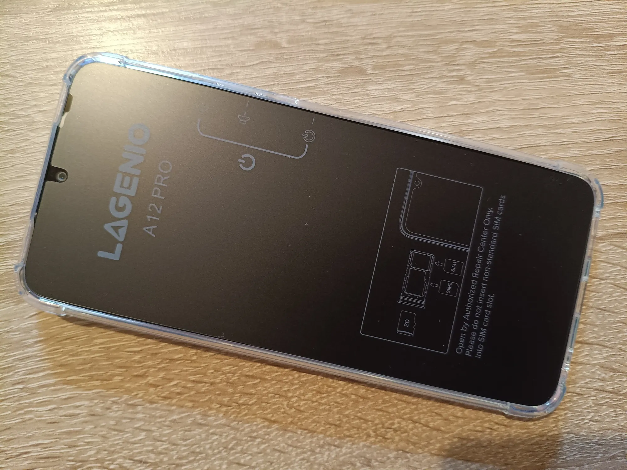 La coque arrière de protection est en place sur le smartphone et le film de protection de l'écran est préinstallé, il suffit d'enlever la partie supérieure et le Lagenio A12 Pro est prêt à l'emploi. Mais avant de l'allumer, faisons en déjà le tour extérieur.