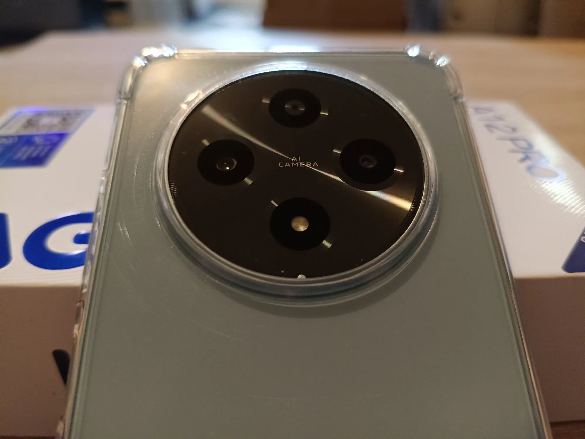 Le dos du smartphone est en plastique rigide, avec un énorme module photos et vidéos rond doté de 4 équipements : 2 objectifs et 2 utilitaires pour l'éclairage (flash et infra-rouge). La coque de protection, transparente, offre un rebord de protection afin de bien l'encadrer et des coins renforcés.