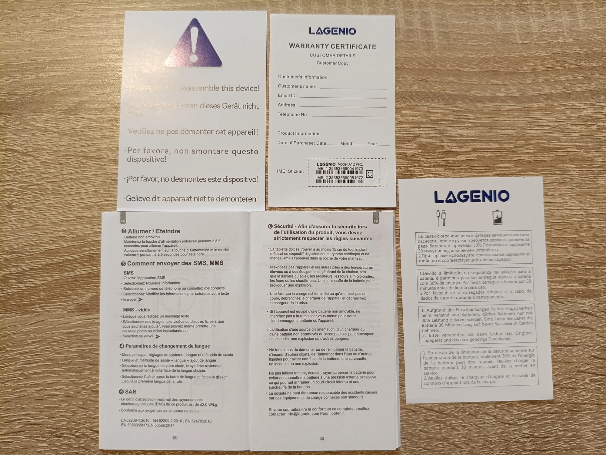 Le packaging du Lagenio A12 Pro n'a rien à envier aux grandes marques de smartphones, simple mais élégant avec écritures bleu métallisé en relief sur fond blanc et les informations principales à l'arrière de la boite. Il dispose même d'un étiquetage en français pour le recyclage, du smartphone et de son emballage.