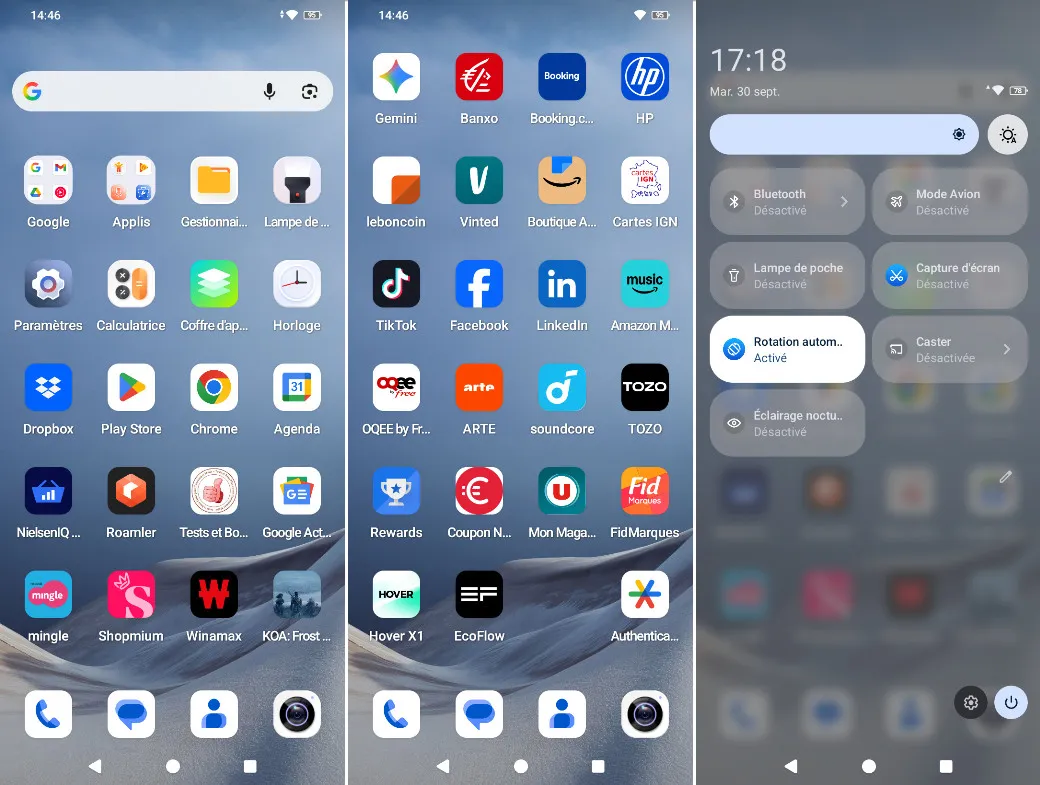 Il dispose de tous les réglages habituels, qui sont partie intégrante de l'interface utilisateur Android 15 pour changer de sonneries, choisir la disposition des icônes sur l'écran, gérer les applications et les notifications, l'économiseur d'écran, etc...